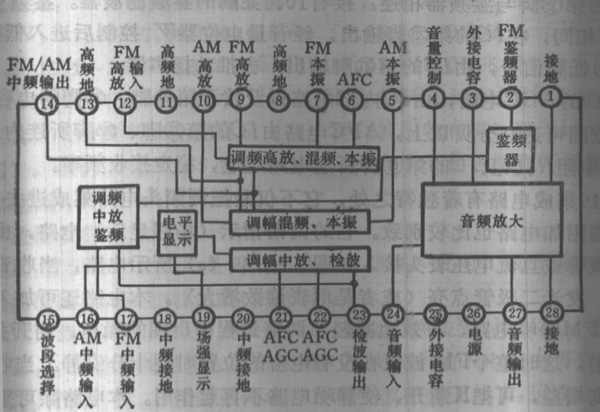 电压范围3V--9V   FM静态电流为5.3mA,AM静态电流3.4mA,允许最大功耗700mW,功放增益31.5dB。19脚接LED3mA,音量控制(4脚)0--1.25V。