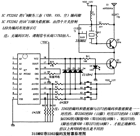 接收板:频率315MHZ/振荡电阻200K/编解码芯片均兼容PT2262/2272系列