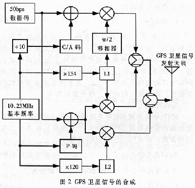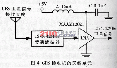 利用GPS卫星实现导航定位时,用户接收机的主要任务是提取卫星信号中的伪随机噪声码和数据码,以进一步解算得到接收机载体的位置、速度和时间(PVT)等导航信息。因此,GPS接收机是至关重要的用户设备。目前实际应用的GPS接收机电路一般由天线单元、射频单元、通信单元和解算单元等四部分组成,如图1所示。本文在分析GPS卫星信号组成的基础上,给出了射频前端GP2010的原理及应用。 1、GPS卫星信号的组成 2、GPS接收机的灵敏度 GPS接收机对信号的检测质量取决于信噪比,当其为“理想接收机”时,接收机输入端的信噪比Si/Ni与其输出端的信噪比So/No相同。由于实际GPS接收机存在内部噪声,使得(So/No)<(Si/Ni);而噪声越大,输出信噪比越越小,则接收机的性能越差,此时接收机的噪声系数为: 式(6)给出了GPS接收机在噪声背景下接收卫星信号的能力,接收机不仅要将输出信号放大到足够的数值,更重要的是要使输出端的信噪比So/No达到所需比值。令(So/No)≥(So/No)min时对应的接收机输入信号功率的最小可检测信号功率为Simin,通常用它表示接收机的灵敏度。由于接收机的输入噪声额定功率