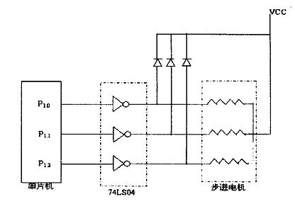 用微机控制系统代替脉冲发生器和脉冲分配器,就可以根据系统需要通过软件编程的方法任意设定步进电机的转速、旋转角度、转动次数和控制步进电机的运行状态。这样可简化控制电路,降低生产成本,提高系统的运行效率和灵活性。图2. 1为单片机控制步进电机接口原理图。