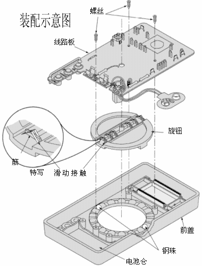 将两只钢珠对称放入面盖内的凹痕中(参照示意图)。