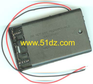 5号4.5V电池盒带盖带开关,外型尺寸:70×48×19mm 装5号3节电池,颜色:黑色,线一般长200mm。虽然价可知贵一点,使用起来,美观又大方,是很电子爱者者的首选之一。如果数量多,线长可以根据需要而定,请提前订货,价格非常优惠。