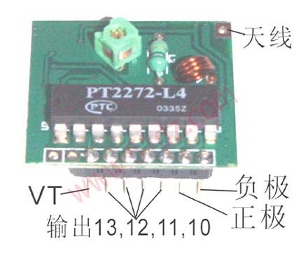 解码IC:PT2272(或兼容型号)        出厂振荡电阻: 270K