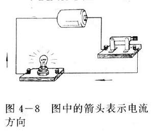 按照这个规定,在电源外部,电流的方向是从电源的正极向负极(图4-8)